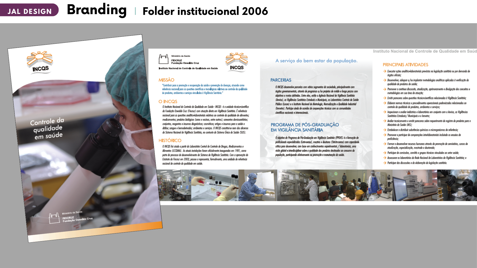 Atendemos o Instituto Nacional de Controle de Qualidade em Saúde – INCQS – de 2005 até 2017. O Instituto é uma unidade da Fundação Oswaldo Cruz -Fiocruz e atua no ensino, pesquisa e tecnologias de laboratório relativas ao controle da qualidade de insumos, produtos e serviços sujeitos à ação da Vigilância Sanitária.