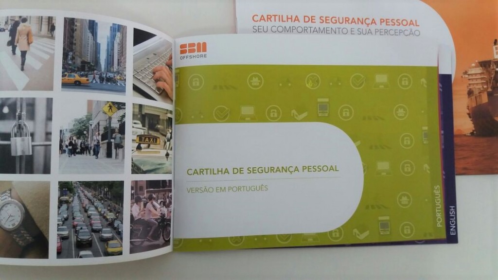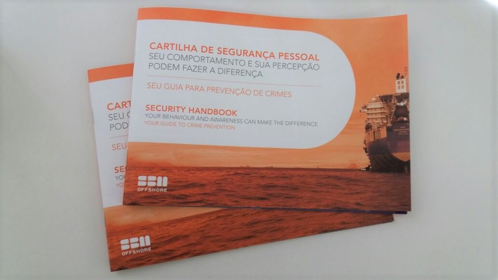 Uma cartilha de segurança foi nosso primeiro trabalho realizado com a SBM Offshore, cliente que a JAL passou a atender no fim de 2016. Assinamos a parte gráfica e a produção, enquanto o conteúdo veio por parte do cliente.