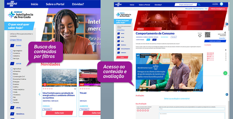 Criamos o projeto detalhado, a partir do mapeamento realizado pelo cliente e os benchmarks apontados, definindo a interação, as funcionalidades, e todo o planejamento. O portal é aberto e gratuito, mas para acessar os conteúdos na integra, requer o cadastro, também gratuito.