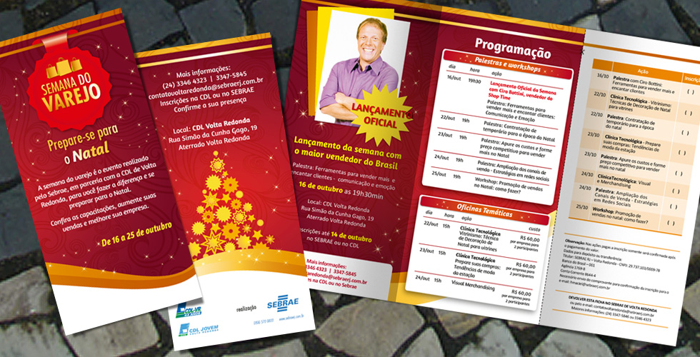 • Semana do varejo: evento realizado próximo ao Natal para incentivar as vendas do comércio. Criamos a identidade visual do evento, folder e email marketing.